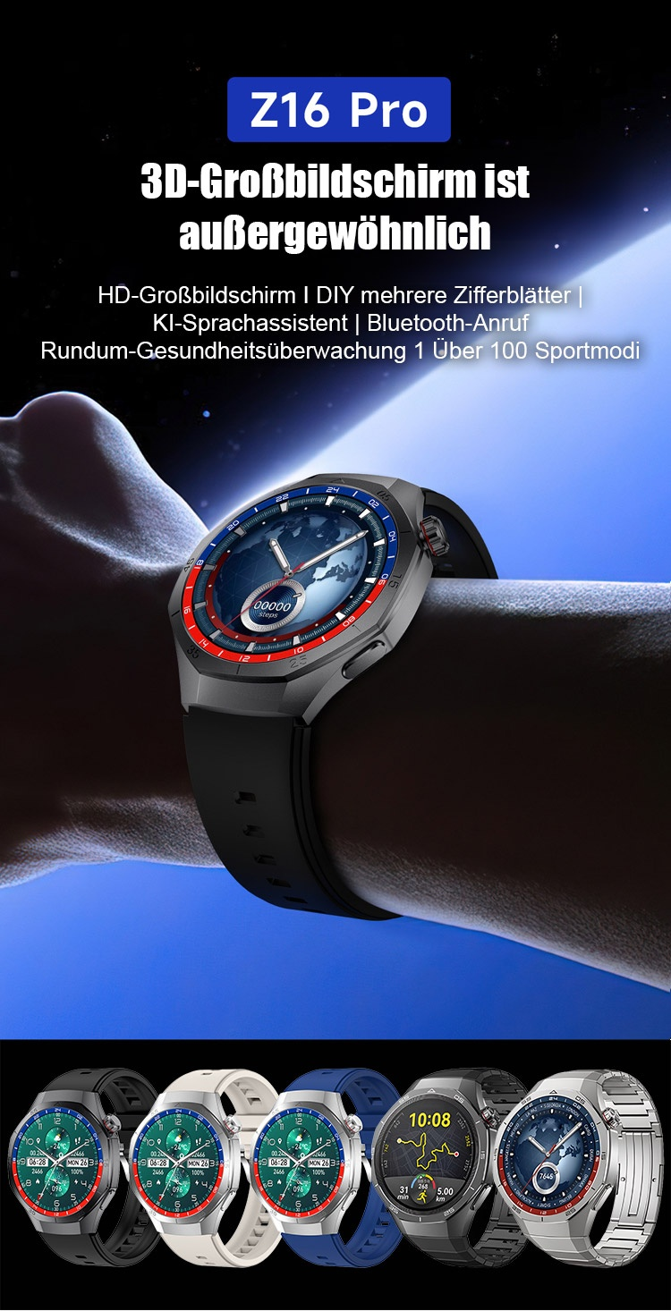Z16Pro HD-Bildschirm Herzfrequenz Gesundheits-Smartwatch